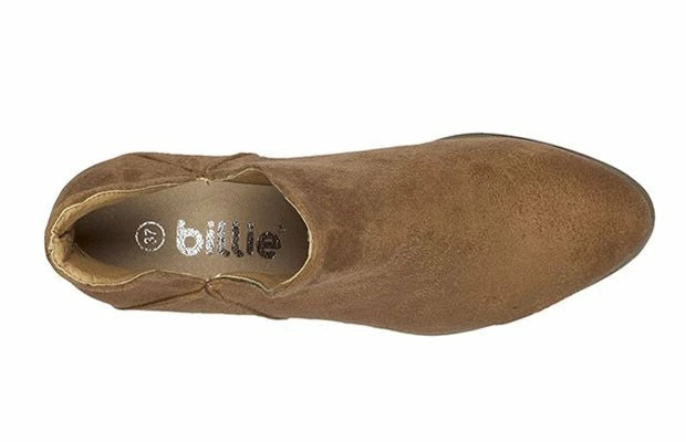 Women’s ankle boot by Billie. Featuring a man-made suede leather upper with a V-shaped cut-out panel, soft pointed shaped and low block heel.