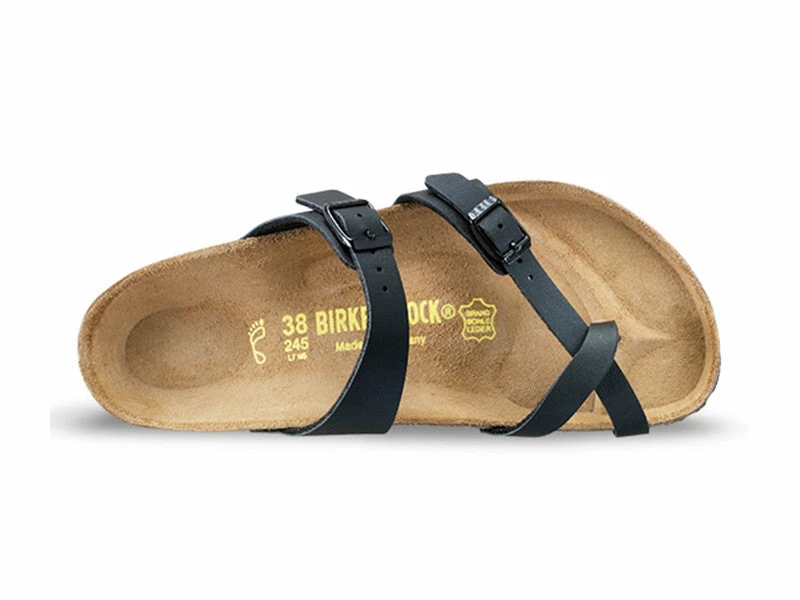 The BIRKENSTOCK Mayari thong sandal is a distinctive classic model with a toe loop and cross strap. The combination of anatomically shaped footbed and secure adjustable instep strap makes Mayari extremely wearable in a wide range of situations.