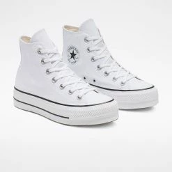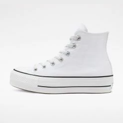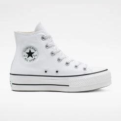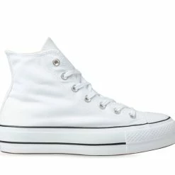 | UP HIGH. A canvas upper and double-stacked sole elevates the iconic, high-top look. With classic Chuck Taylor All Star design elements, like a star ankle patch and “All Star” license plate on the heel. EVA cushioning keeps it comfortable. Get lifted. | |