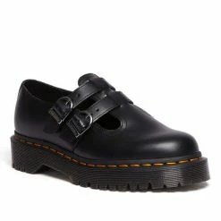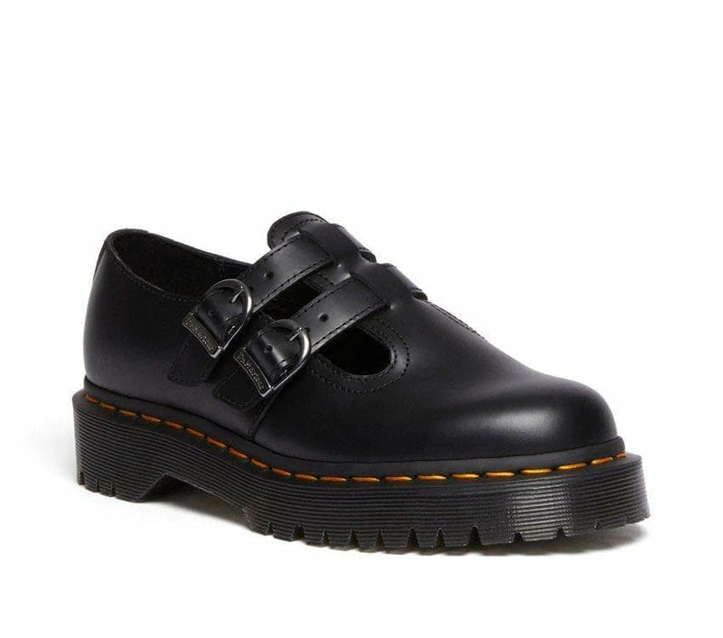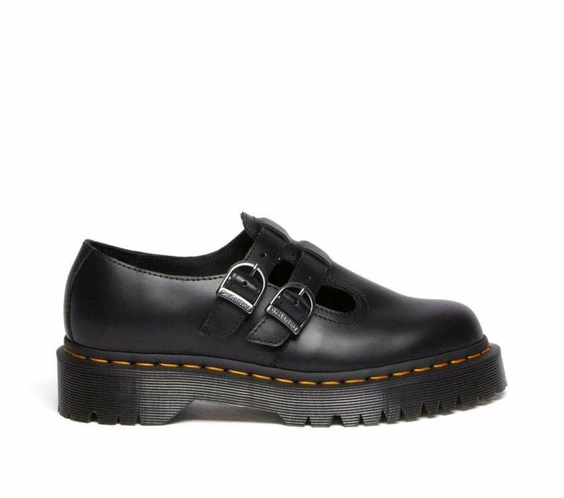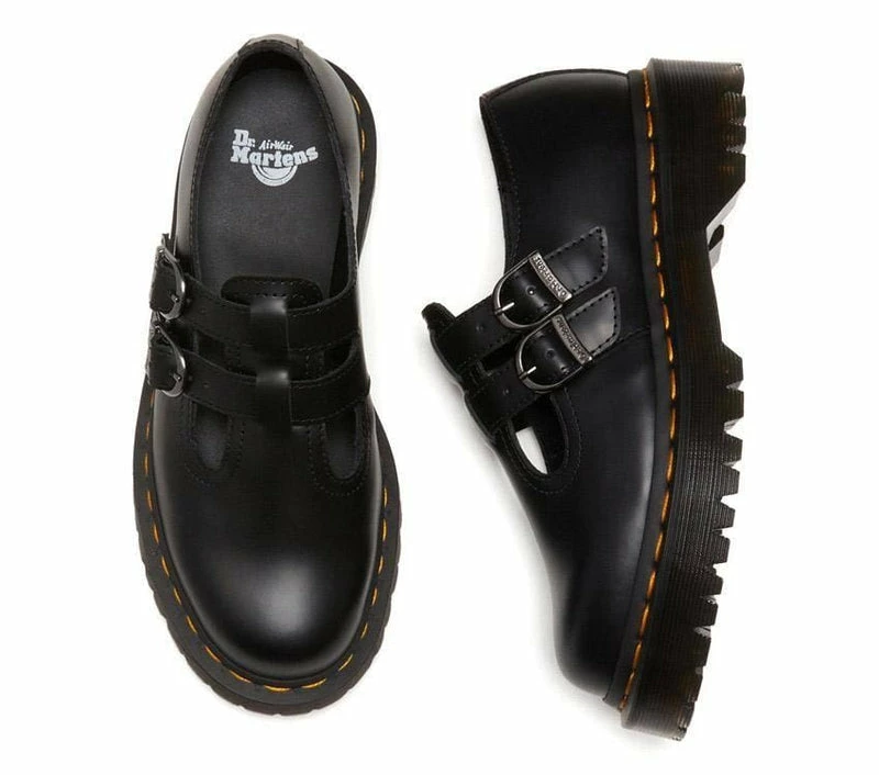 Back in the 80s, our 8065 shoe turned the tradition of impractical women’s footwear on its head. Fusing a classic T-bar fastening with a rugged AirWair sole, the well-trodden silhouette remains a favorite to this day. This edition stays true to the Original construction, with tough Smooth leather, our signature yellow welt stitching, and are set on our double-height Bex sole, which brings a little bit of extra height and edge with the same DM’s versatility.
