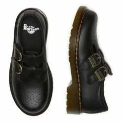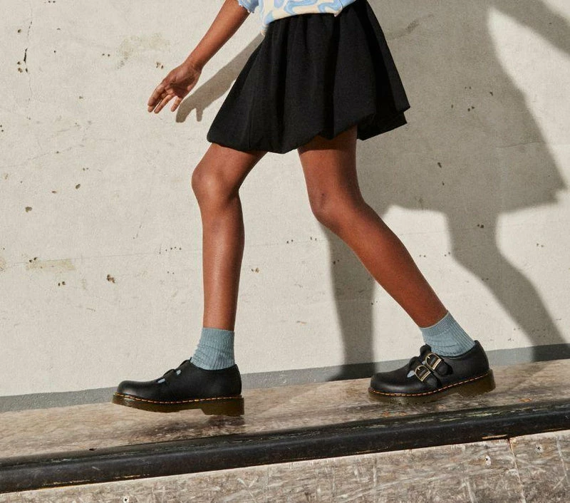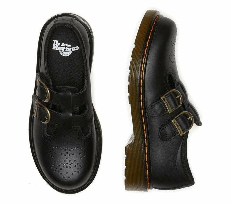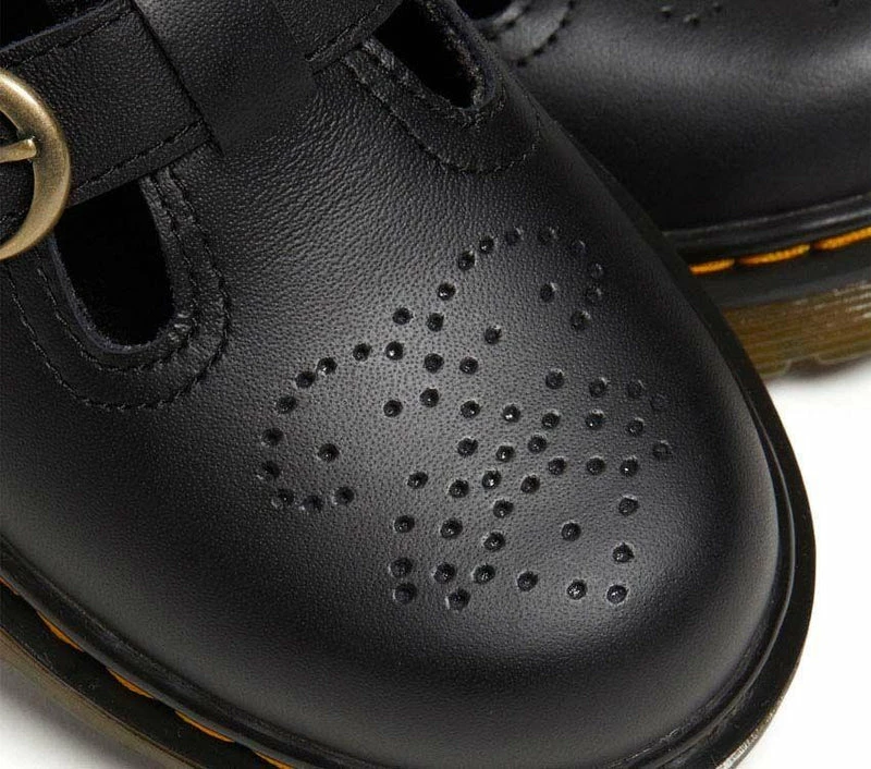 Meet the Juniors 8065: a quintessential schoolgirl look reinterpreted with uncompromising style, like decorative broguing and double straps with horseshoe buckles. These Mary Janes retain plenty of Doc’s DNA, like grooved edges, yellow stitching and Softy T leather, a lightly textured, highly durable leather with a soft sheen. The shoe is built on our iconic air-cushioned sole, that’s oil and fat resistant, with good abrasion and slip resistance. Durable and solid, the sole is secured using one of the finest construction methods available: the Goodyear Welt.