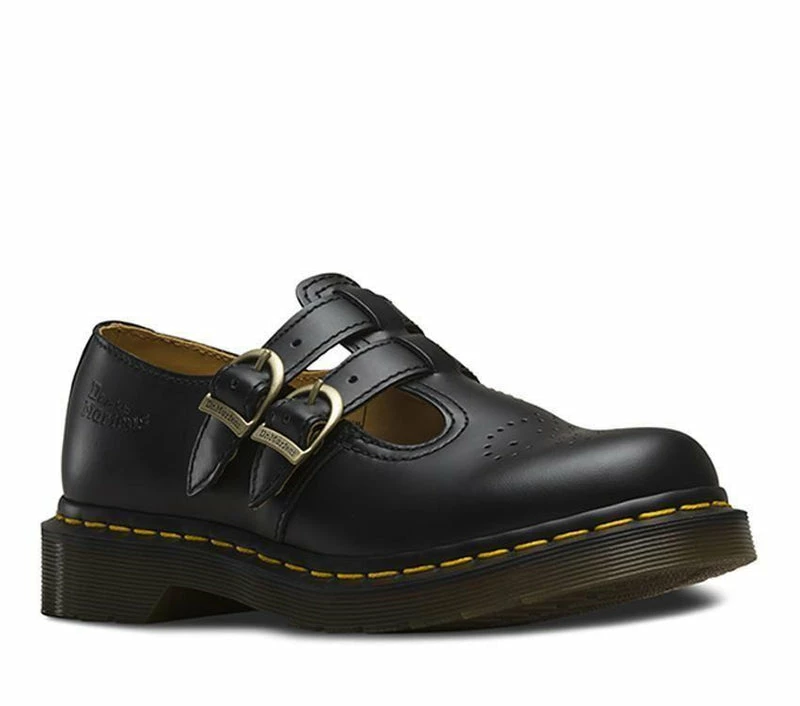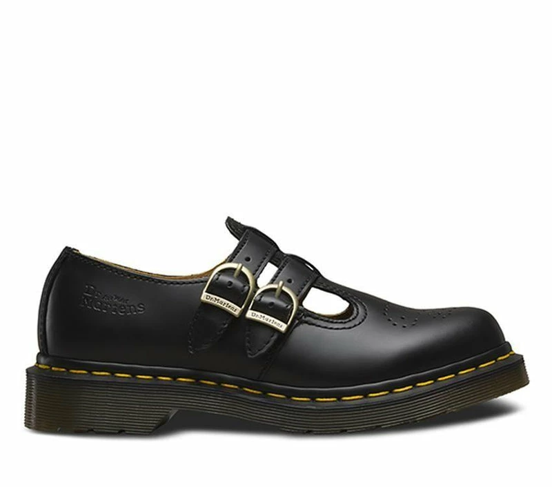 Meet the 8065: a quintessential schoolgirl look reinterpreted with uncompromising style, like decorative broguing and double straps with horseshoe buckles. These Mary Janes retain plenty of Doc’s DNA, like grooved edges, yellow stitching and Smooth leather, a lightly textured, highly durable leather with a soft sheen. The women’s shoe is built on our iconic air-cushioned sole, that’s oil and fat resistant, with good abrasion and slip resistance. Durable and solid, the sole is secured using one of the finest construction methods available: the Goodyear Welt.