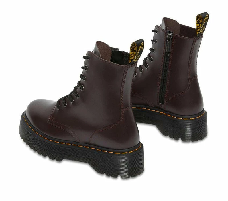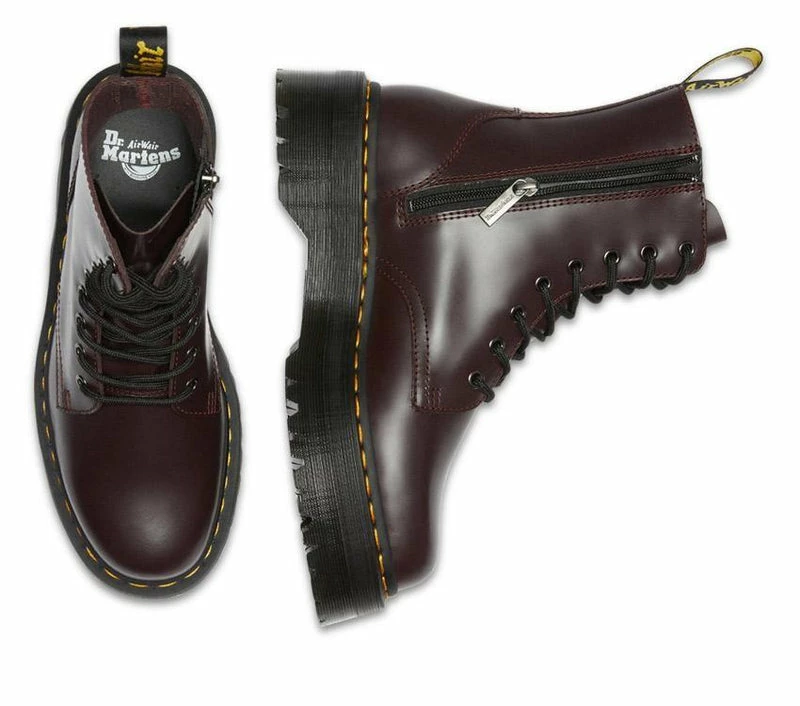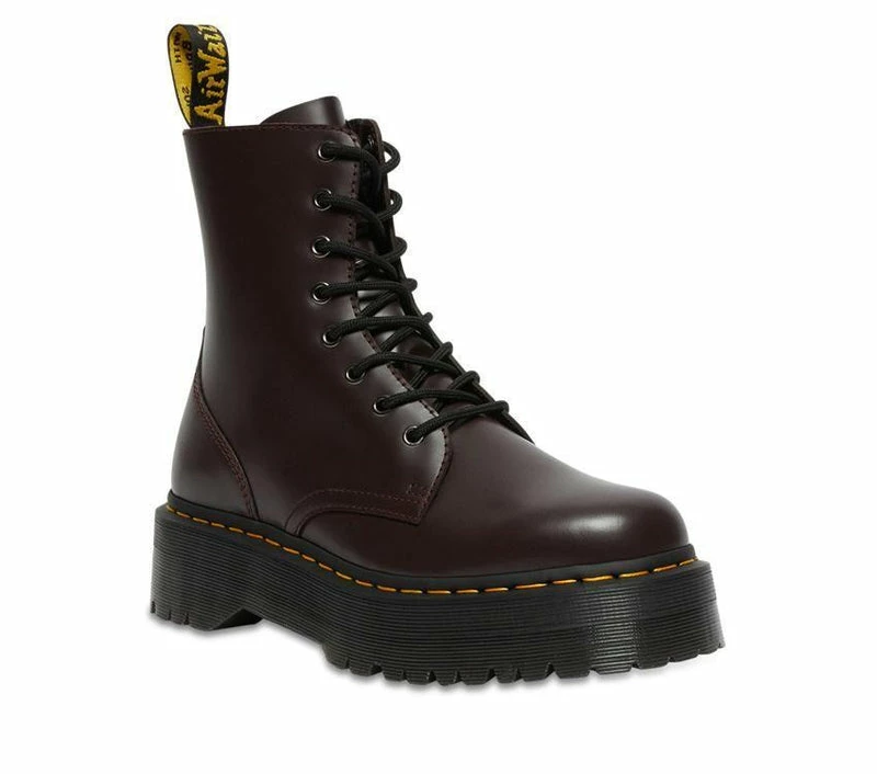 Our Jadon boot returns in a revived brand colour, burgundy – evolving our headlining silhouette while shining a spotlight on our history. The empowering Jadon 8-eye boot sits on our stacked 1.85” Quad Retro platform sole and is built from our classic Smooth leather.