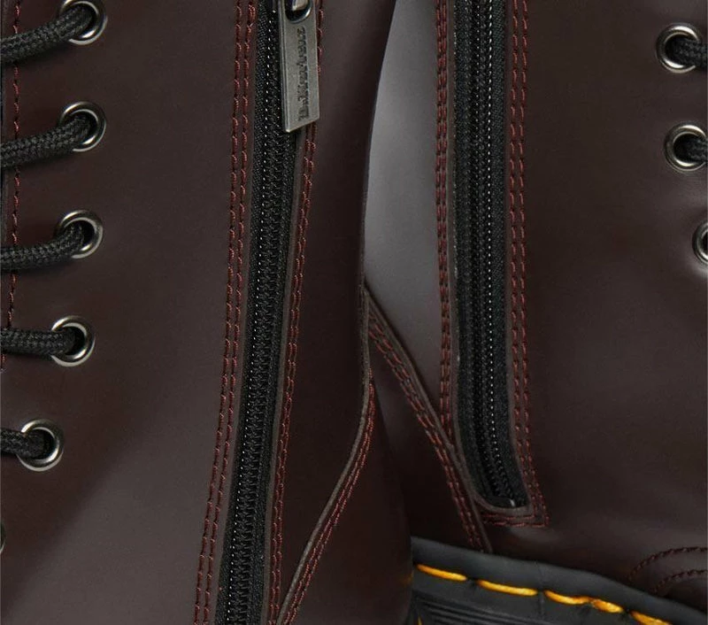 The original Dr. Martens leather: super-durable, with a smooth finish polished to a high shine.