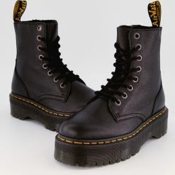 Our platform Jadon never stops evolving. An amped-up evolution of the Original Docs boot, this season’s rework sees one of our bestsellers reimagined in a softer Pisa leather. Standing on a towering 1.5 inch sole, it’s unmistakably a Docs boot with stand out yellow stitching and black and yellow heel loop. Finished with a side zip for easy on/easy off accessibility.