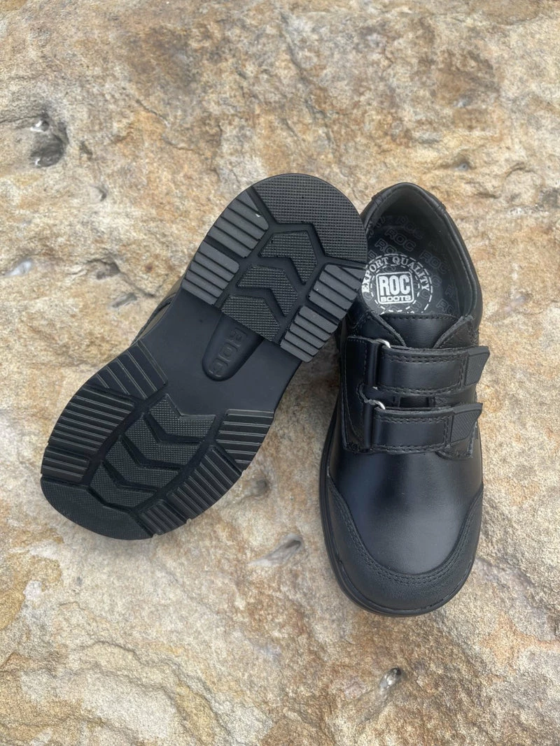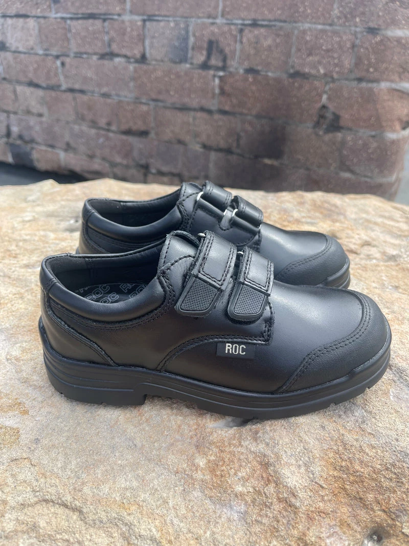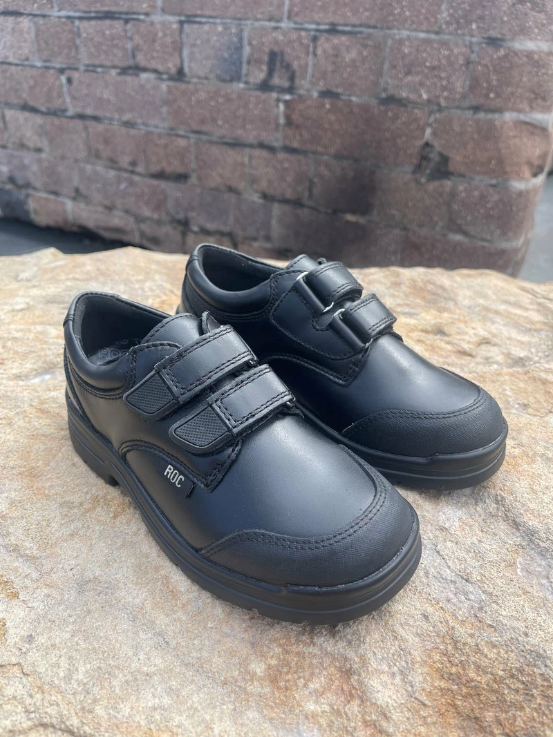 Children’s Leather Shoes by Roc Australia. Velcro Leather Shoe named Rapp is fitted with Roc’s Shock Treatment System.
