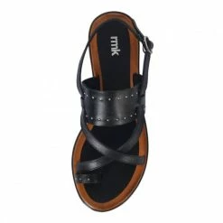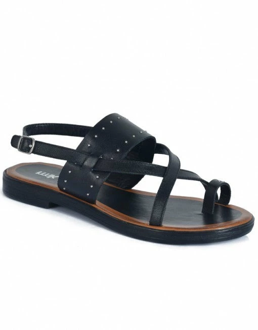 A Summer flat that will take you from music festival to a romantic beachside wedding, style RENE with distressed denim or floaty layers of folkloric lace. Featuring this subtle silver tone studs and adjustable ankle strap.