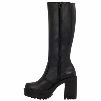 Roc Boots Gusto Black Leather Knee High Boots with Zip