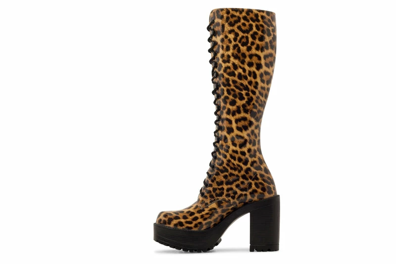 Roc Boots Lash Tan Leopard Patent Knee High Boots