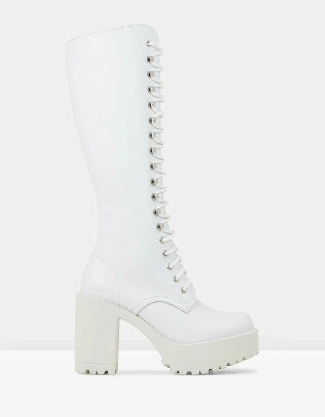 Roc Lash White Leather Knee High Boots