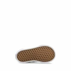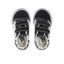 The Primary Check Old Skool V, inspired by the Vans classic skate shoe, features a low profile silhouette with sturdy checkerboard-printed canvas and suede uppers, hook-and-loop closures, padded collars for support and flexibility, and signature rubber waffle outsoles.