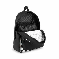 The Realm Backpack is a 100% polyester two-pocket backpack featuring a zippered main compartment with an interior laptop sleeve, a front organization pocket, adjustable padded straps, and debossed lining at the interior back panel.