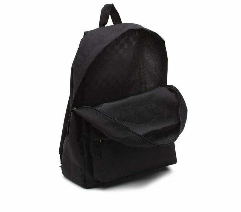 The Vans Realm Backpack is a two pocket backpack with debossed lining at the interior back panel. It has a zippered main compartment, a front organisation pocket for storing items neatly and an interior laptop sleeve.