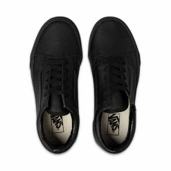 The Old Skool, the Vans classic skate shoe and first to bare the iconic sidestripe, is a low top lace-up for everyday use or for school. It features padded collars for support and flexibility, and the signature rubber waffle outsoles. Black on black leather shoe perfect for school.